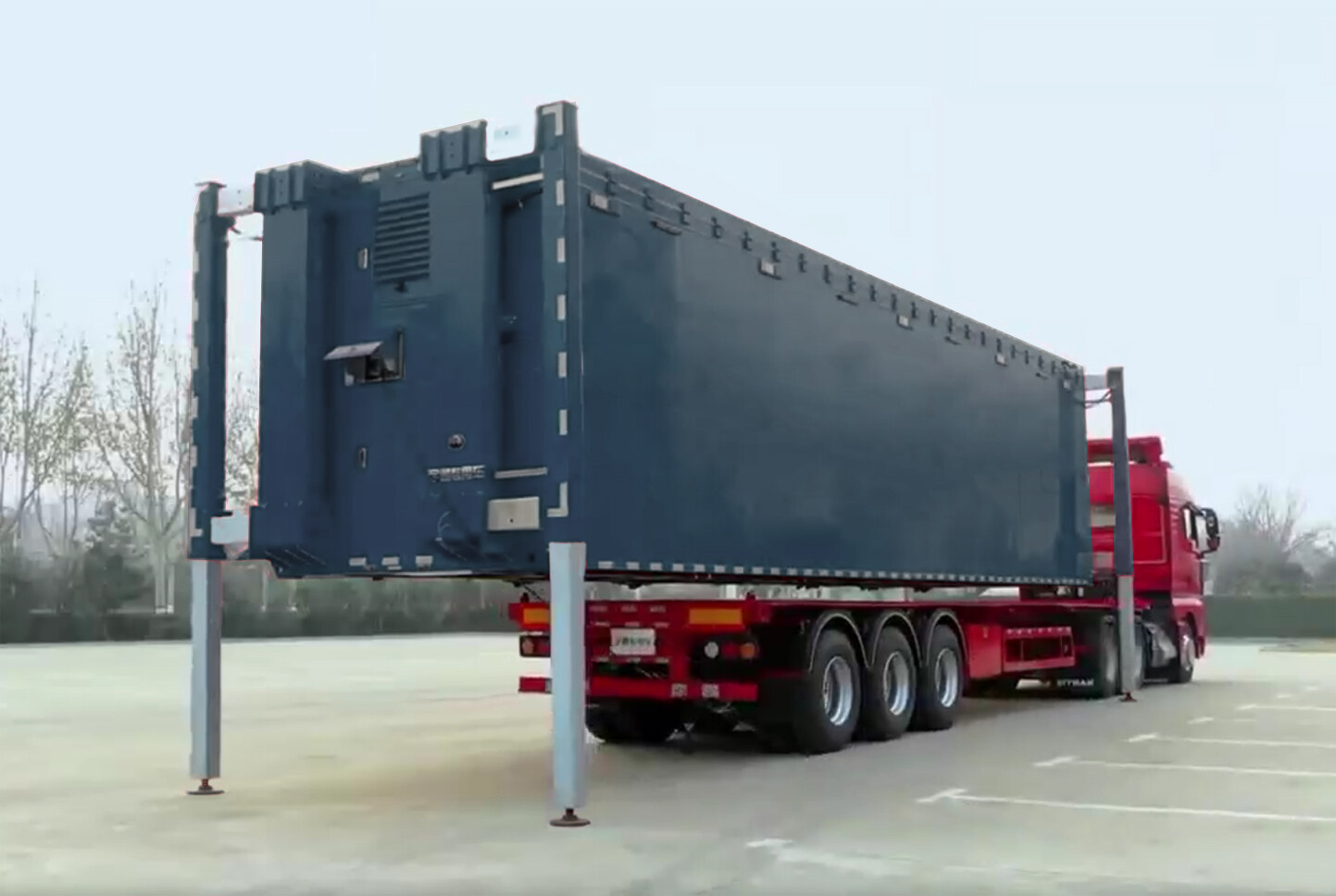 无需吊机,降低使用成本,带有自动装卸系统可以通过装载系统自动上下车上车下车。